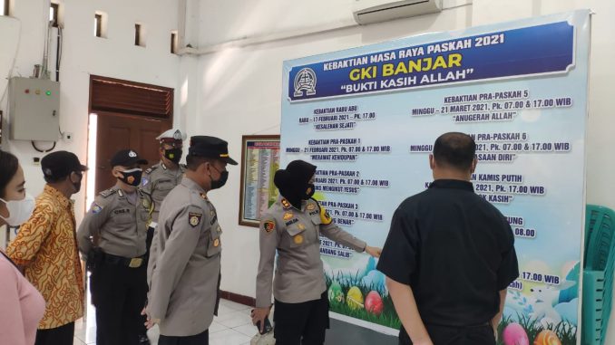 BANJAR, MEDIA OTONOMI INDONESIA – Menyikapi perkembangan situasi terkini, Kapolres Banjar AKBP Melda Yanny, mengecek dan berkoordinasi dengan pihak gereja-gereja di Kota Banjar, pagi tadi Kapolres mengecek Gereja Kristen Indonesia (GKI) dan Gereja Santo Pilipus, Kamis (1/4/2021).