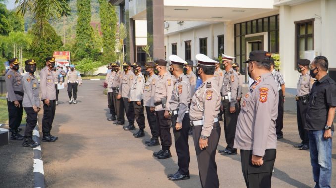 Hadir dalam acara ini Wakapolres Banjar, Pejabat Utama, Para Perwira, serta Kapolsek Jajaran dan diikuti oleh seluruh personel Polres Banjar dan Polsek Jajaran, Sabtu (1/5/2021).