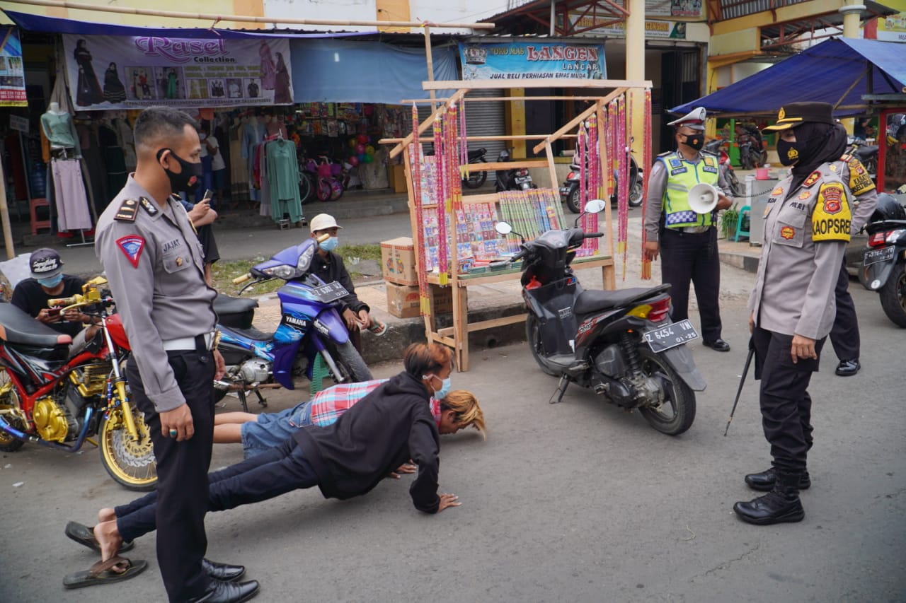 “Ya, sore ini menjelang waktu berbuka puasa atau waktu ngabuburit, kami mendatangi pasar Langensari, tadi beberapa warga kami tindak langsung dengan sanksi ringan berupa push up” kata Kapolres.