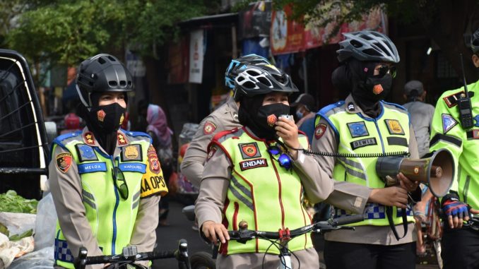 BANJAR, MEDIA OTONOMI INDONESIA – Memantau wilayah hukum Polres Banjar, Kapolres Banjar AKBP Melda Yanny, bersama Kasat Lantas, Kasat Sabhara, dan Kasat Binmas serta Personil Polwan dan Personil Polres Banjar melaksanakan patroli sepeda dengan menyasar pusat keramaian warga kota Banjar, Rabu (30/9/2020).