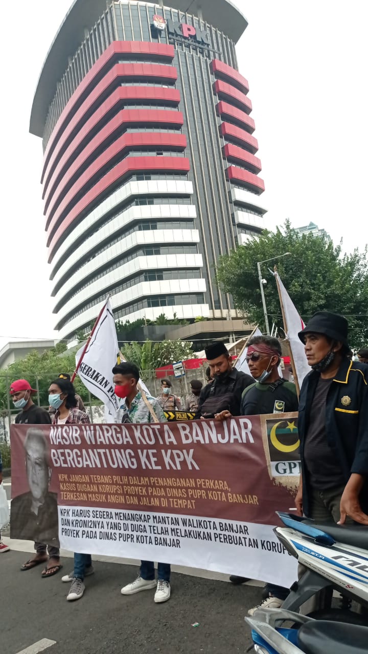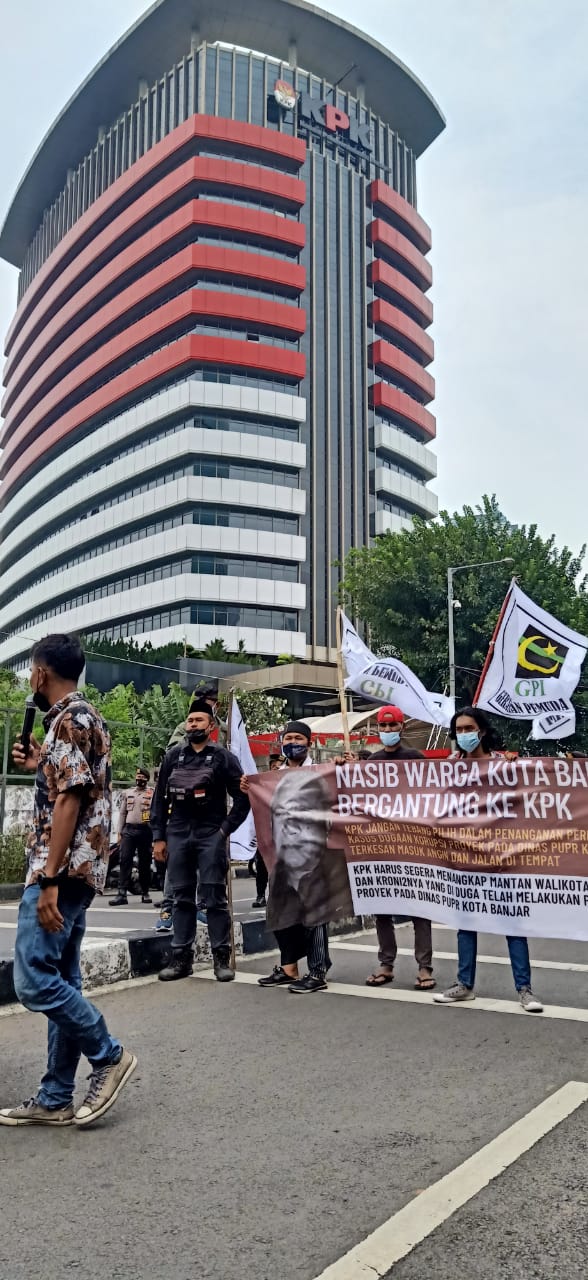 “Kami menuntut kasus dugaan korupsi  tersebut segera di tindak lanjuti oleh KPK,” dan segera menahan tersangkanya, ujar Aan Setiana Ketua PD GPI Kota Banjar.