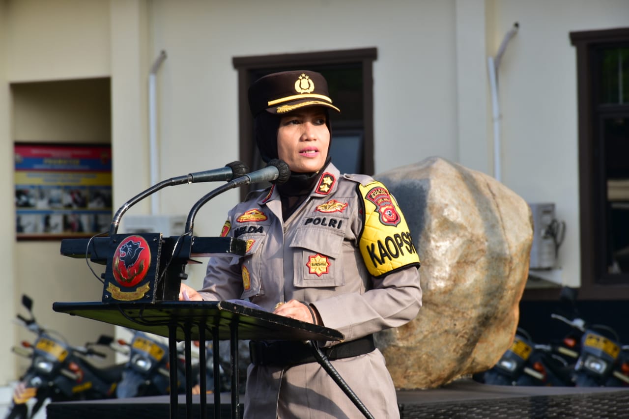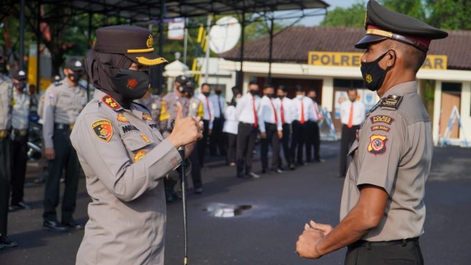 BANJAR, MEDIA OTONOMI INDONESIA – Berlokasi di halaman Mapolres Banjar, Kapolres Banjar AKBP Melda Yanny memimpin upacara kenaikan pangkat penghargaan dari Aiptu ke Ipda kepada Ipda Agus Widodo, Rabu (2/6/2021).