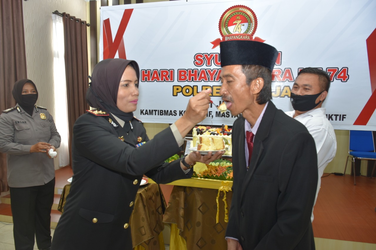 BANJAR, MOI – Bertempat di Lobby Utama Polres Banjar, Polres Banjar gelar syukuran Hari Bhayangkara Ke 74 dengan dihadiri oleh Kapolres Banjar AKBP Melda Yanny, Pejabat Utama Polres Banjar, serta tamu undangan Forkopimda yakni Wakil Walikota Banjar Nana Suryana, Ketua Pengadilan Negeri Kota Banjar Kusman, S.H.,M.H., Kepala Kejaksaan Negeri Kota Banjar Gunadi, S.H.,M.H., serta Perwira Penghubung (Pabung) Kodim 0613 Ciamis Mayor Czi. Budi Ariyanto.