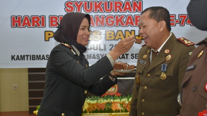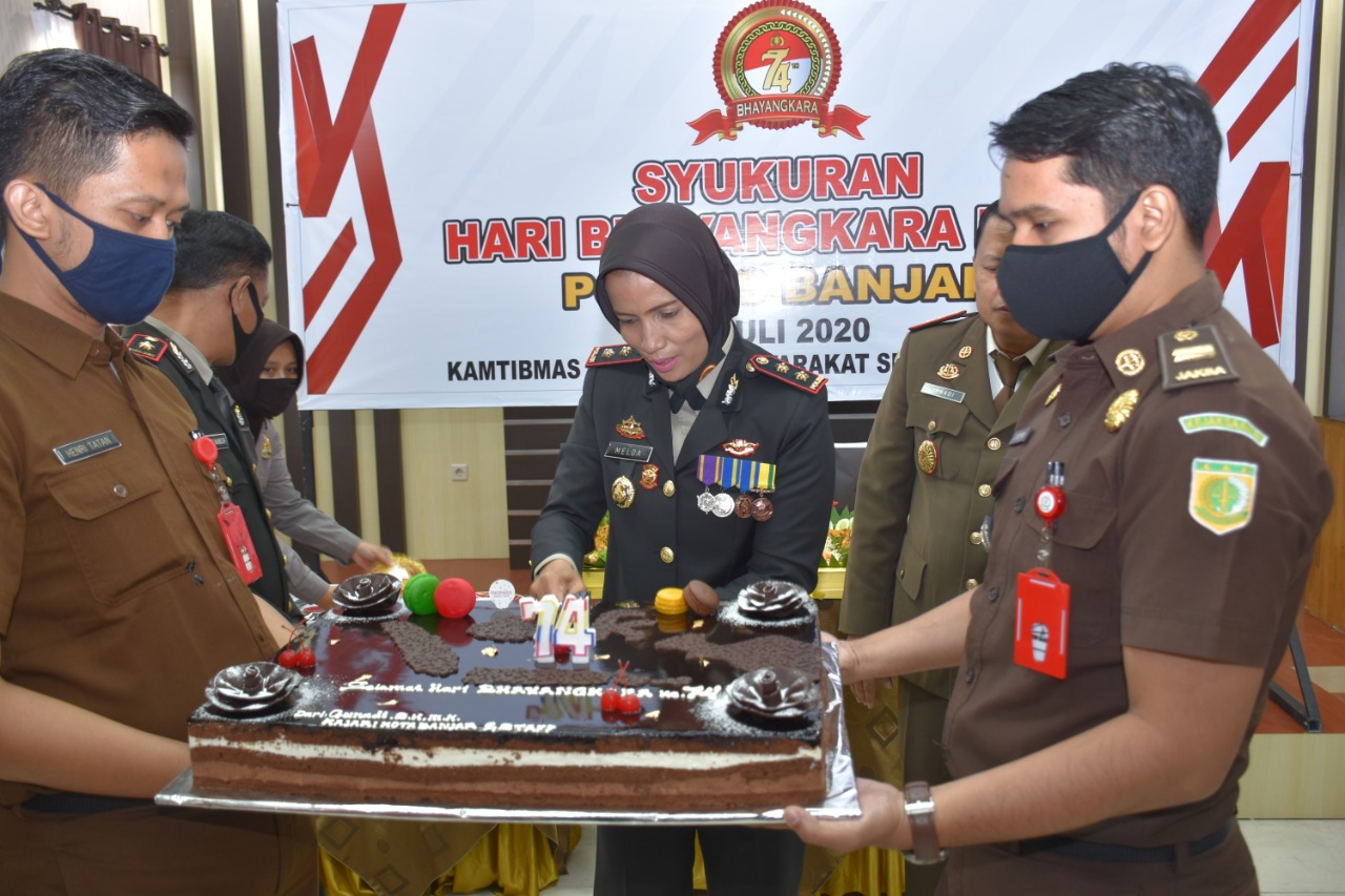 Secara bergantian Forkopimda yang diawali oleh Jajaran Kejaksanaan Negeri Kota Banjar dipimpin oleh Kajari Kota Banjar dengan membawa kue bertulisan Hari Bhayangkara dengan lilin berbentuk angka 74, kemudian disusul kejutan dari Wakil Walikota Banjar, dengan membawa kue bergambar foto Kapolres Banjar dengan lilin berbentuk angka 74, kemudian tidak lama berselang Jajaran Kodim 0613 Ciamis dipimping langsung oleh Dandim 0613 Ciamis Letkol Arm. Tri Arto Subagyo, membawa 2 buah tumpeng.