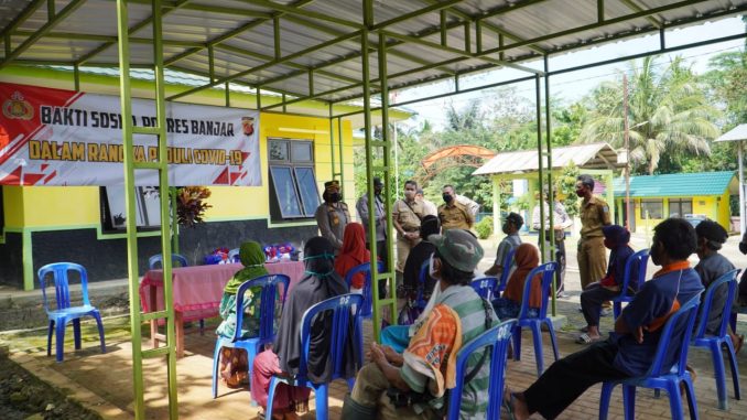 Dalam kegiatan tersebut Kapolres menyampaikan kepada penerima bansos untuk mengikuti vaksinasi yang telah disediakan di Gerai Vaksin Presisi. (Yudhi’s)