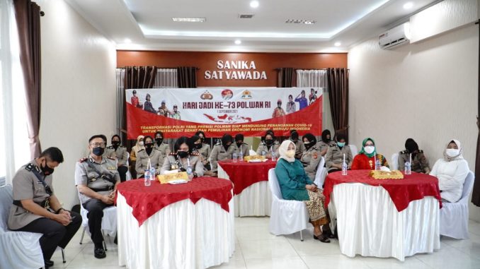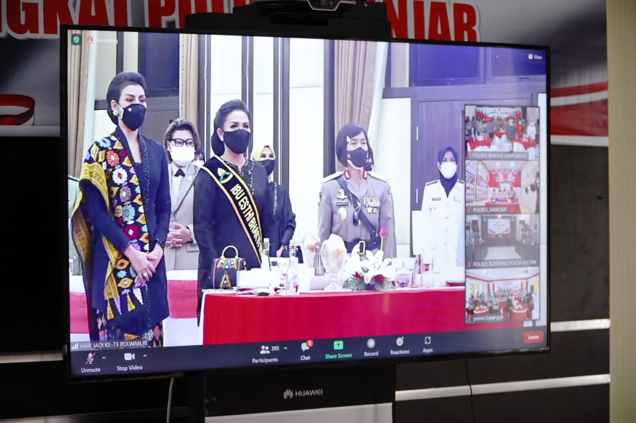Banjar – Berlokasi di Aula Vicon Polres Banjar Kapolres Banjar AKBP Ardiyaningsih bersama Personel Polisi Wanita (Polwan) Polres Banjar mengikuti peringatan Hari Ulang Tahun (HUT) ke-73 Polwan tahun 2021 yang digelar oleh Mabes Polri secara Virtual, Kamis (2/9/2021).