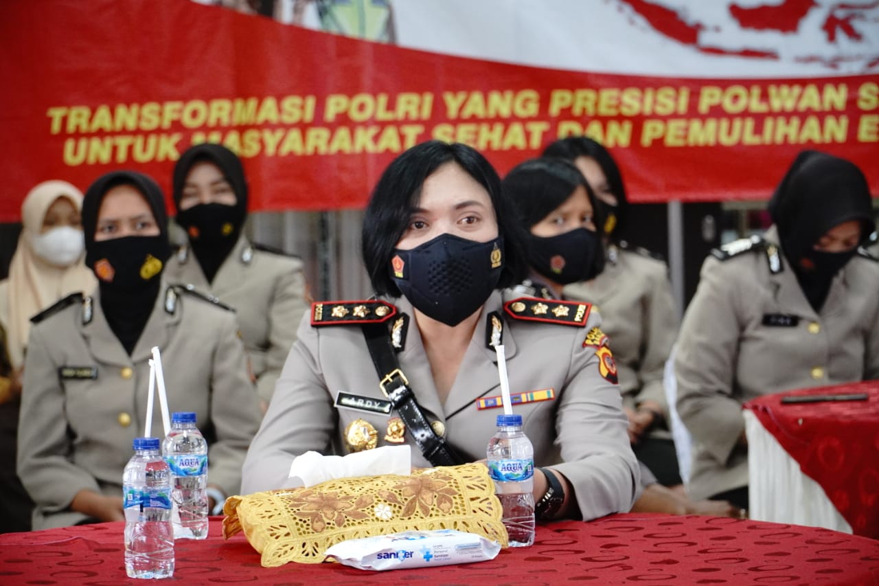 “Polwan Polres Banjar siap mendukung dalam perceparan penanganan Covid-19 dan pemulihan ekonomi nasional untuk menuju Indonesia maju” ujar Kapolres. (Yudhi’s)