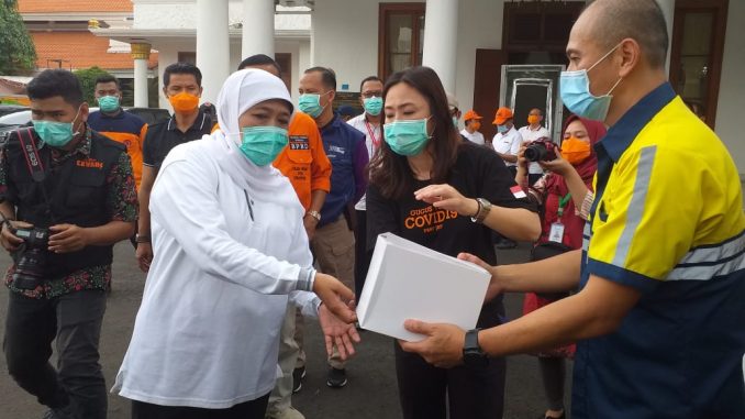 SURABAYA, MOI – Bantuan Alat Pelindung Diri (APD) untuk penanganan covid-19 terus berdatangan ke pemerintah Provinsi Jawa Timur. Kali ini APD bantuan datang dari Kementerian Maritim dan Investasi Republik Indonesia, dan bantuan ini langsung diterima oleh Gubernur Jatim, Khofifah Indar Parawansa, Sekdaprov Jatim, Heru Tjahjono dan Kepala BPBD Jatim, Subhan di Halaman gedung negara grahadi, Jumat (3/4/2020).