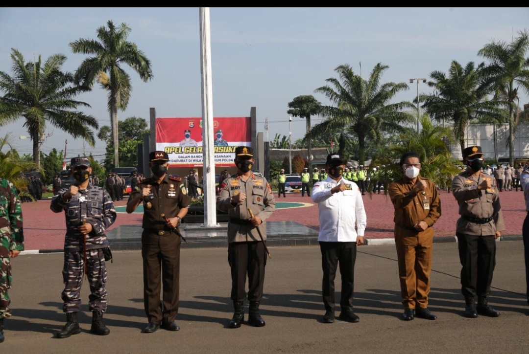 “Kita melakukan Apel Gelar Pasukan Dalam Rangka PPKM Darurat. Dengan sungguh-sungguh apa yang diatur akan kita laksanakan,” tegas Sekda Al Muktabar kepada wartawan di Markas Kepolisian Daerah Banten Jl Syech Nawawi Al Bantani Kelurahan Banjar Agung, Kecamatan Cipocok Jaya, Kota Serang (Sabtu, 3/7/2021).