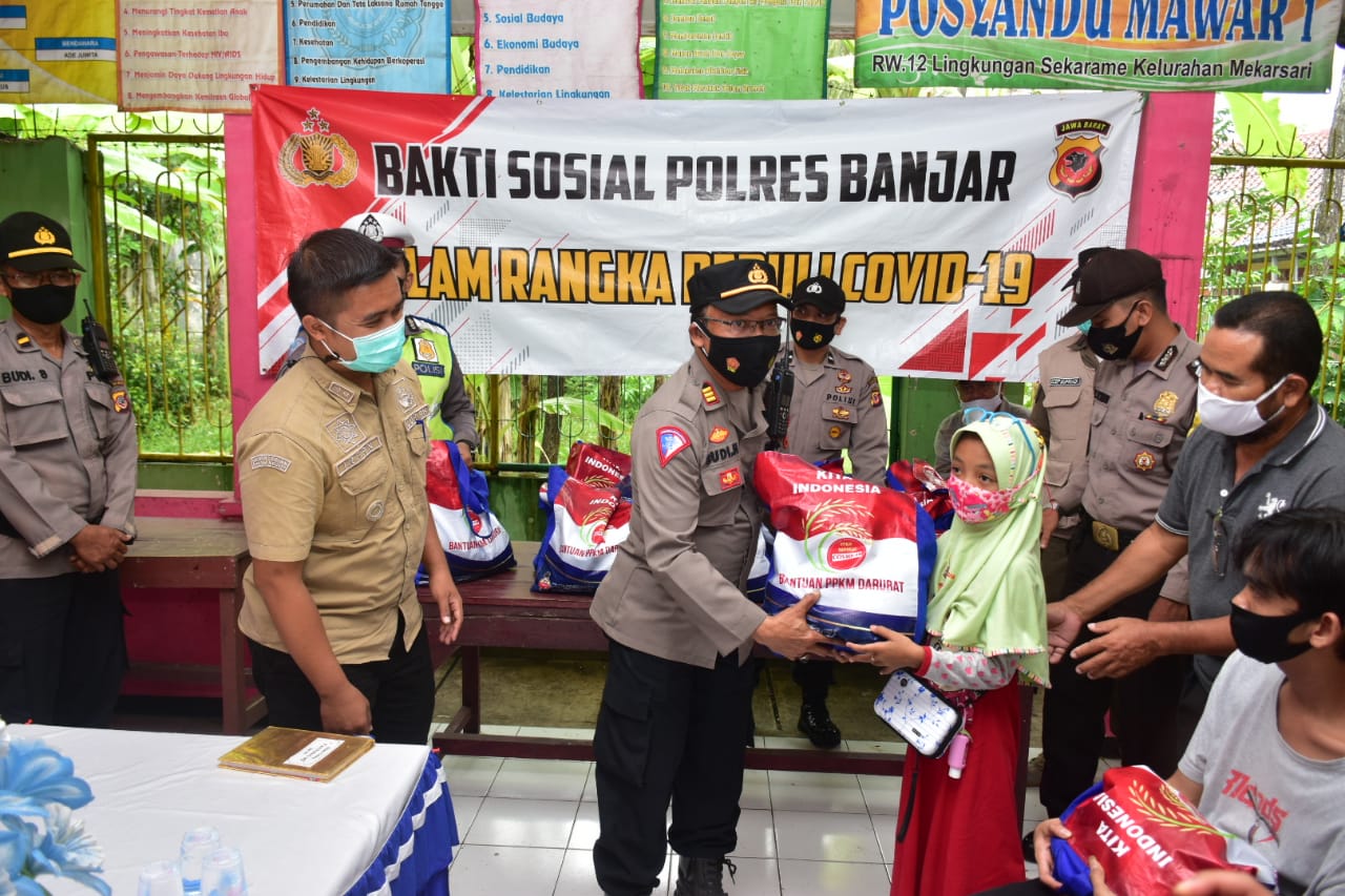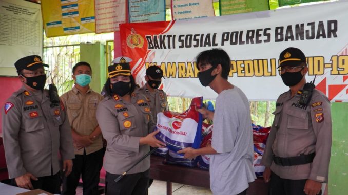 mediaotonomiindonesia.com, Banjar – Kapolres Banjar AKBP Ardiyaningsih menyalurkan Bantuan Sosial (Bansos) berupa beras dan paket sembako kepada warga masyarakat Kota Banjar yang terdampak pandemi Covid-19 dalam situasi PPKM Level 4, Selasa (3/8/2021).