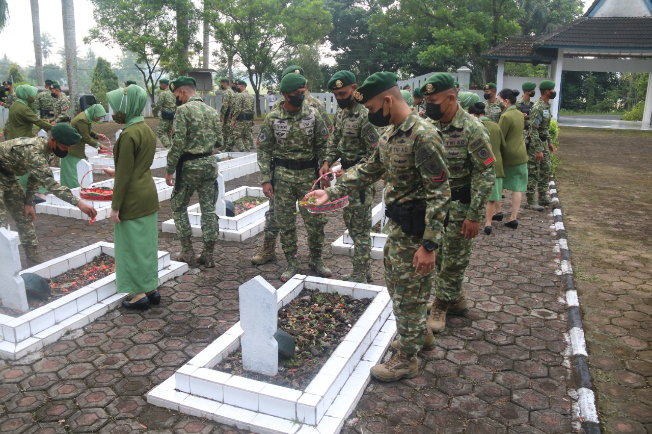Selanjutnya tabur bunga yang dilaksanakan oleh Prajurit Yonif Raider 323 BP/Kostrad dan Persit Yonif Raider 323 , mengakhiri rangkaian acara ziarah ke TMP.