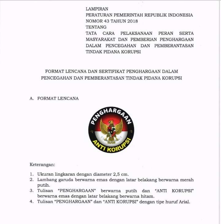 Lebih lanjut PKN memohonkan Penghargaan dan Lencana dan Premi sesuai amanat PP 43 Tahun 2018 Pasal 13 (1) Masyarakat yang berjasa membantu upaya pencegahan, pemberantasan, atau pengungkapan tindak pidana korupsi diberikan penghargaan.