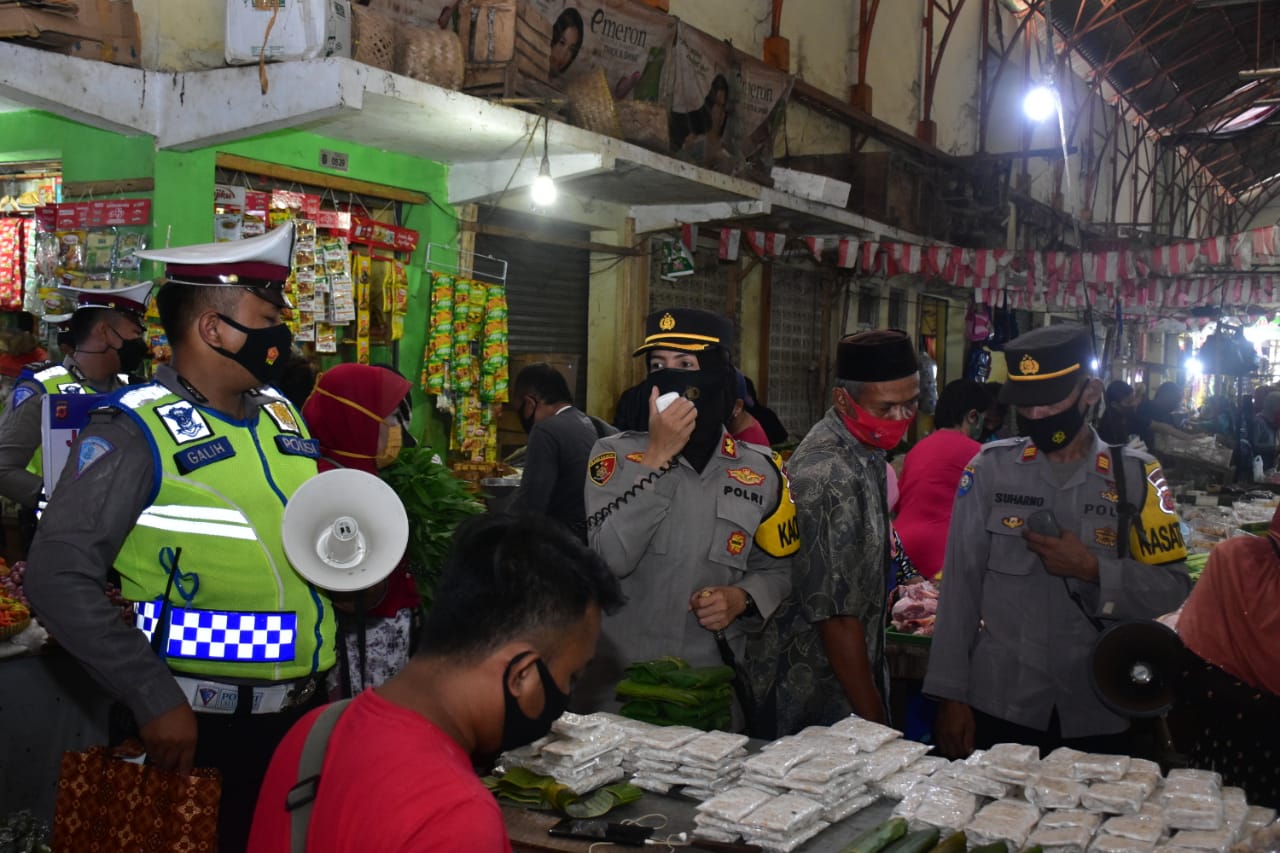 Dalam kegiatan tersebut juga Kapolres membagikan masker kepada pedagang maupun pengunjung pasar Kota Banjar. (YR)