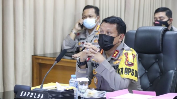 Kapolda Banten Irjen Pol Dr. Rudy Heriyanto, S.H., M.H., M.B.A didampingi Wakapolda Banten, dan di hadiri para PJU Polda Banten mengikuti kegiatan Rapat Koordinasi Evaluasi PPKM Darurat di Ruang Vicon Mapolda Banten, Senin, (05/07/2021).