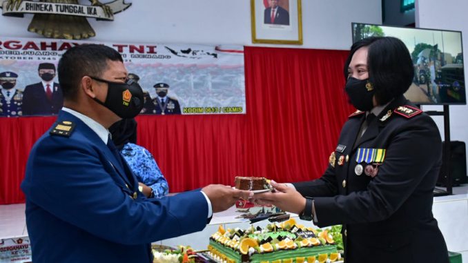 Ciamis, mediaotonomiindonesia.com – Kapolres Banjar AKBP Ardiyaningsih, bersama Walikota Banjar Hj. Ade Uu Sukaesih serta Forkopimda Kota Banjar bersama-sama mendatangi Makodim 0613/Ciamis dalam rangka Hari Ulang Tahun TNI ke-76, Selasa (5/10/2021)