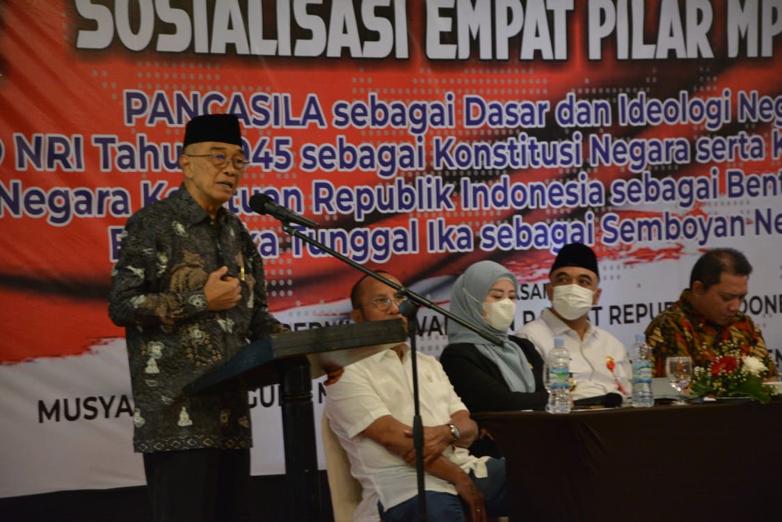 “Dengan sosialisasi Empat Pilar ini diharapkan mampu menjaga keutuhan Bangsa Indonesia dari Sabang sampai Merauke, berdiri kokoh sebagai negara yang berdaulat dan memiliki karakter,” kata Bupati Zaki, di Hotel Aryaduta, Senin (5/12/2022).