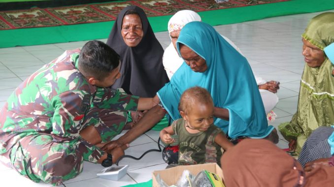JAYAWIJAYA / PAPUA, MOI – Dalam rangka HUT Kostrad ke 59 Satgas Penyangga Yonif Raider 323/BP Kostrad Pos Napua, berbagi sembako dan pengobatan gratis kepada masyarakat kampung pedalaman Walesi Kabupaten Jayawijaya Wamena, Papua. Jum’at (6/03/2020).
