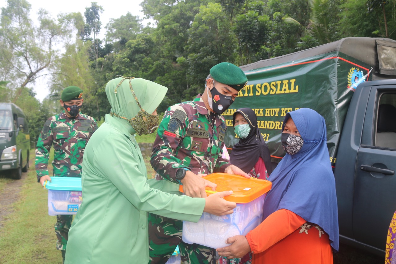 BANJAR, MEDIA OTONOMI INDONESIA – Dalam rangka memperingati HUT Ke 75 Persit, Persit Kartika Candra Kirana (KCK) Ranting 4 Yonif Raider 323 melaksanakan kegiatan pemberian sembako di Kampung Siluman Kelurahan Purwaharja Kecamatan Purwaharja Kota Banjar, Senin (5/4/2021).