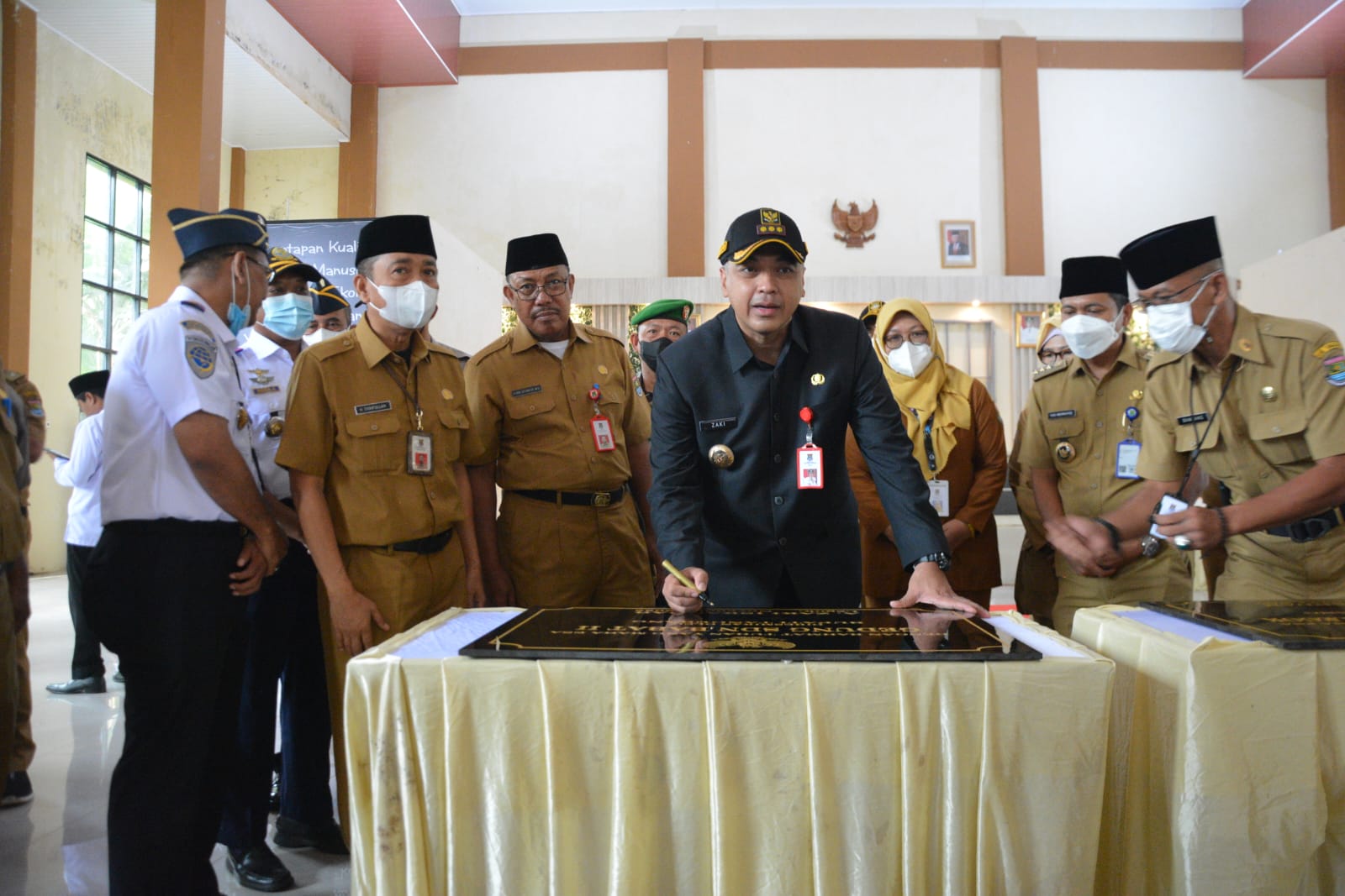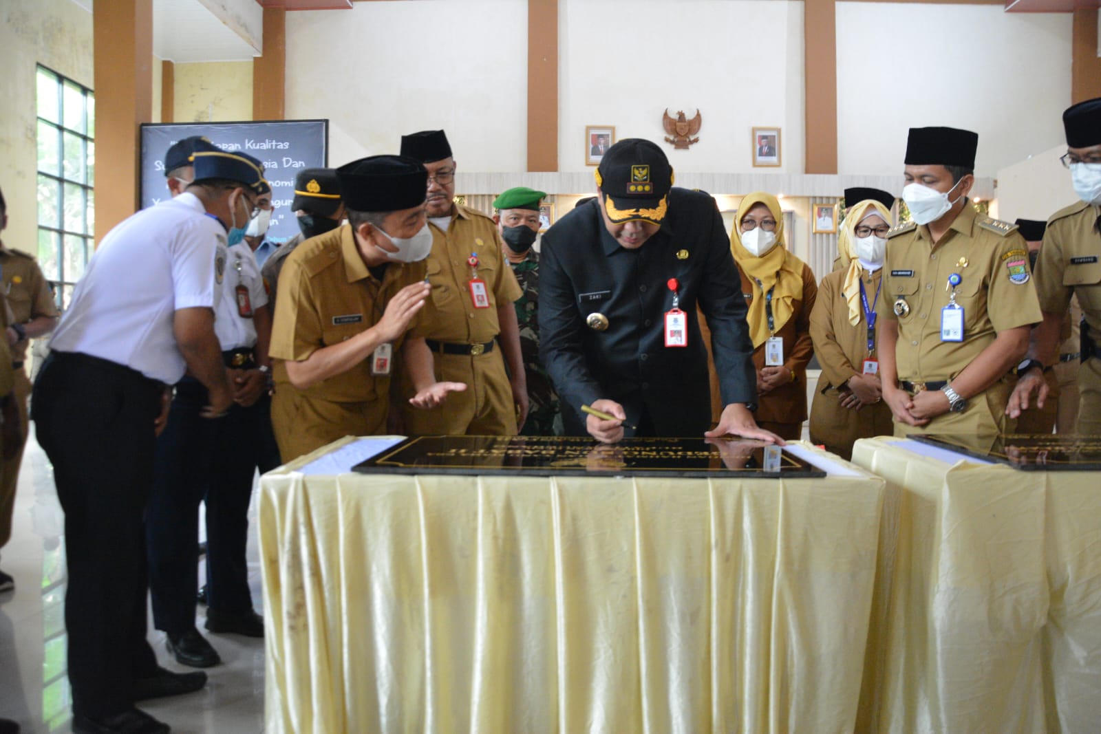 Pada kesempatan apel tersebut, Bupati Zaki juga menandatangani prasasti peresmikan penggunaan Gedung Puskesmas Legok dan SDN Babat II. (Bagian Protokol dan Komunikasi Pimpinan Setda Kab. Tangerang)