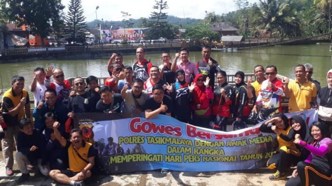 TASIKMALAYA, MOI – Kapolres Tasikmalaya AKBP Dony Eka Putra beserta jajaranya melakukan kegiatan Gowes (bersepeda) Bersama Awak Media dan Bank BRI Cabang Singaparna, kegiatan tersebut dalam rangka Memperingati Hari Pers Nasional Tahun 2020, Jum’at (7/2/2020).