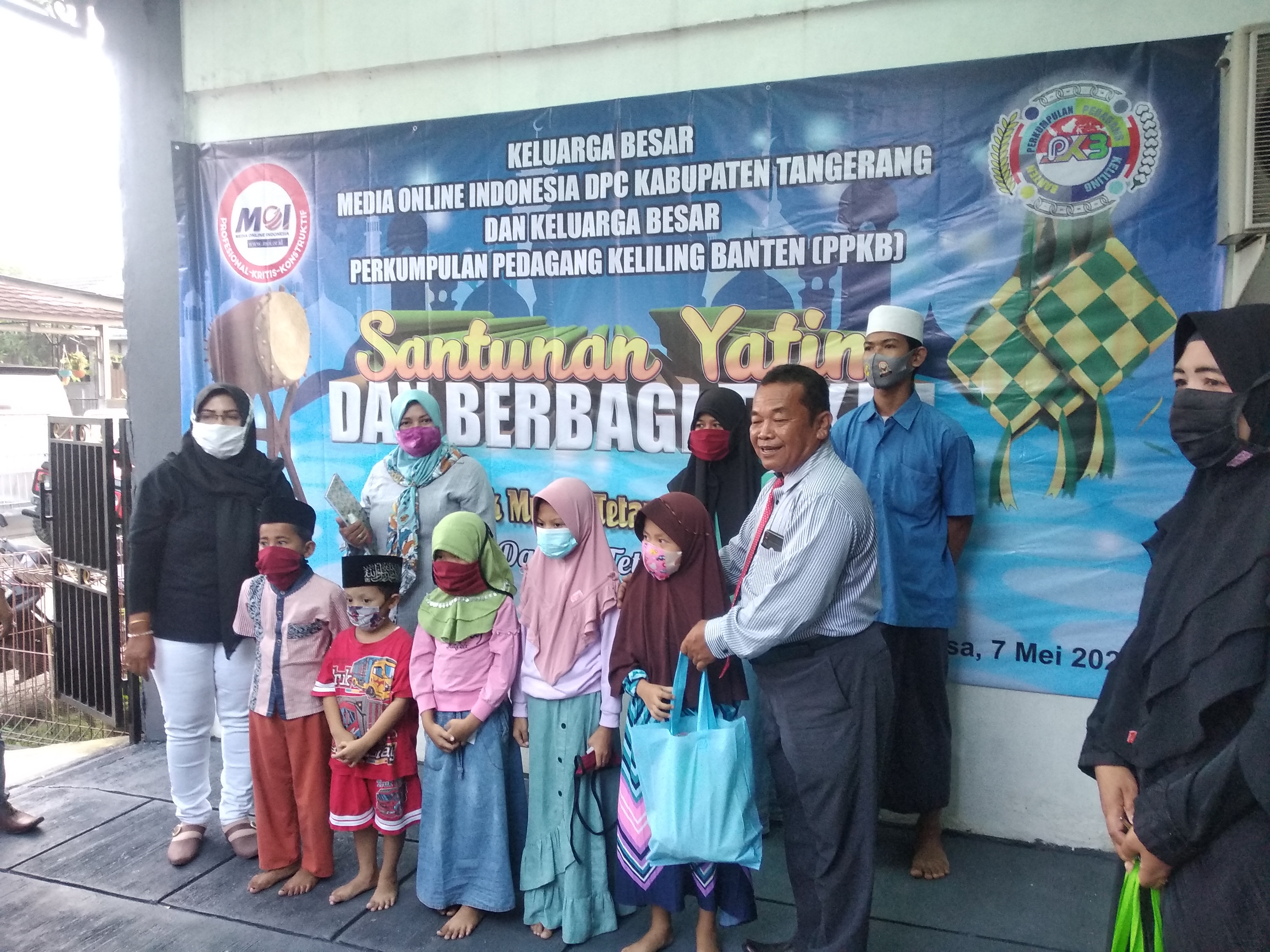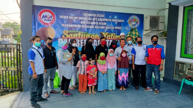 TANGERANG, MEDIA OTONOMI INDONESIA – Menjelang hari raya Idul Fitri Keluarga Besar Media Online Indonesia (MOI) dan Keluarga Besar Perkumpulan Pedagang Keliling Banten (PPKB) berkolaborasi bersama sama mengayunkan langkah berjalan memberikan santunan kepada anak yatim piatu dan membagi Masker guna putus mata rantai Covid-19, sekaligus bagi bagi Tagjil di Jalan Raya PWS Tigaraksa, Kabupaten Tangerang.