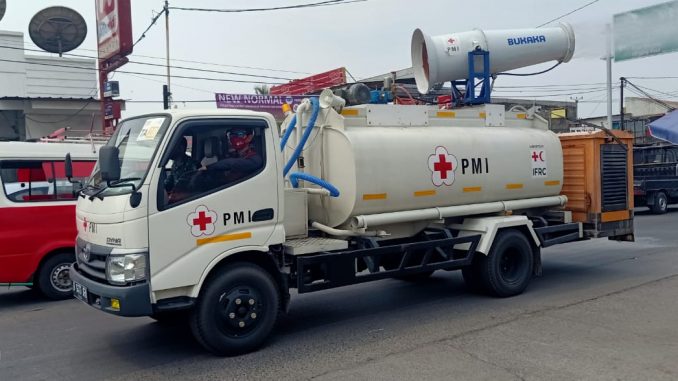 “PMI Kabupaten Tangerang menurunkan 1 unit mobil gunner atau mobil tanki yang dilengkapi alat pengkabut untuk melakukan penyemprotan cairan disinfektan di jalan-jalan protokol di Kecamatan Sepatan,” kata Soma. (Red/Humas Gugus tugas Covid-19 Kabupaten Tangerang).