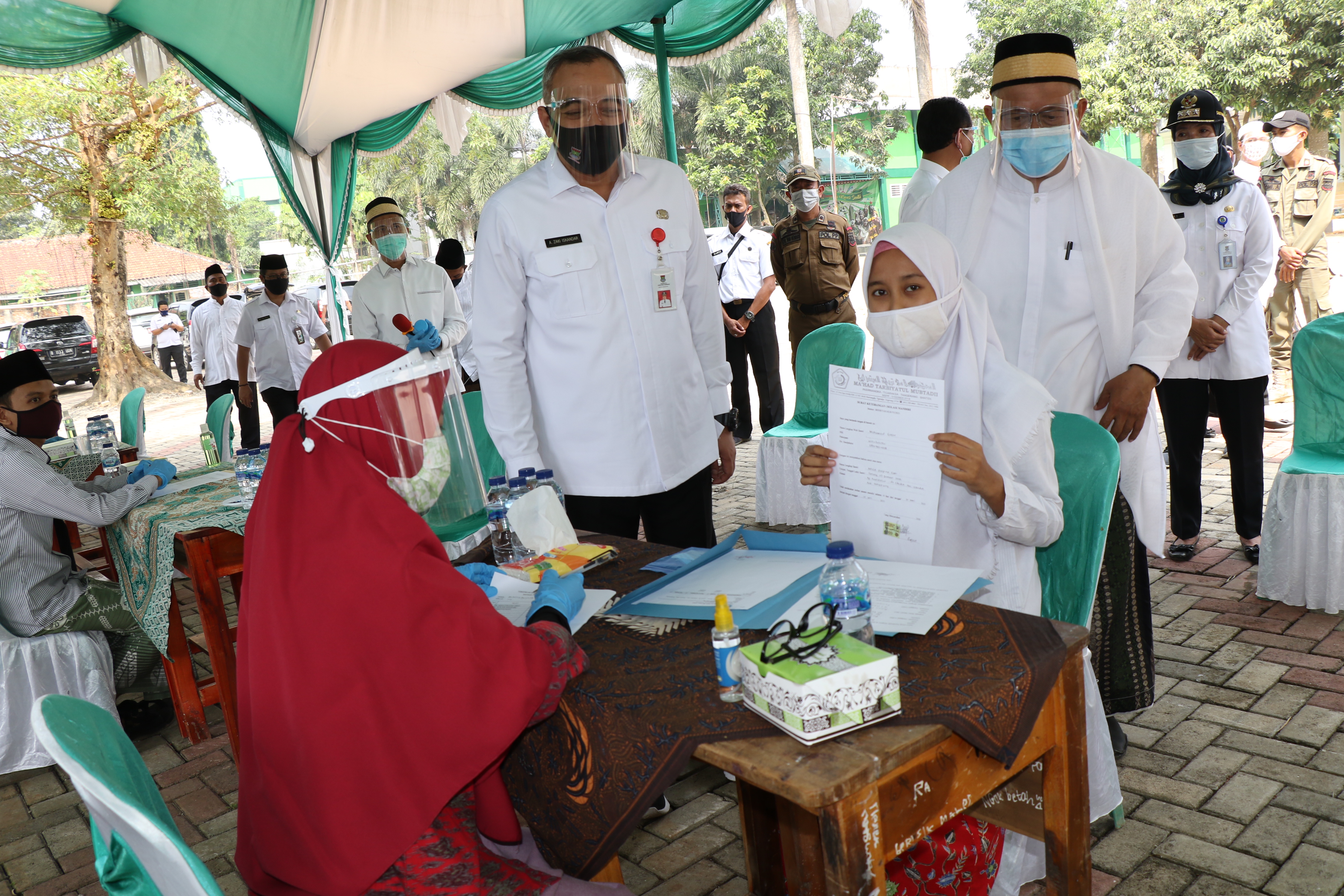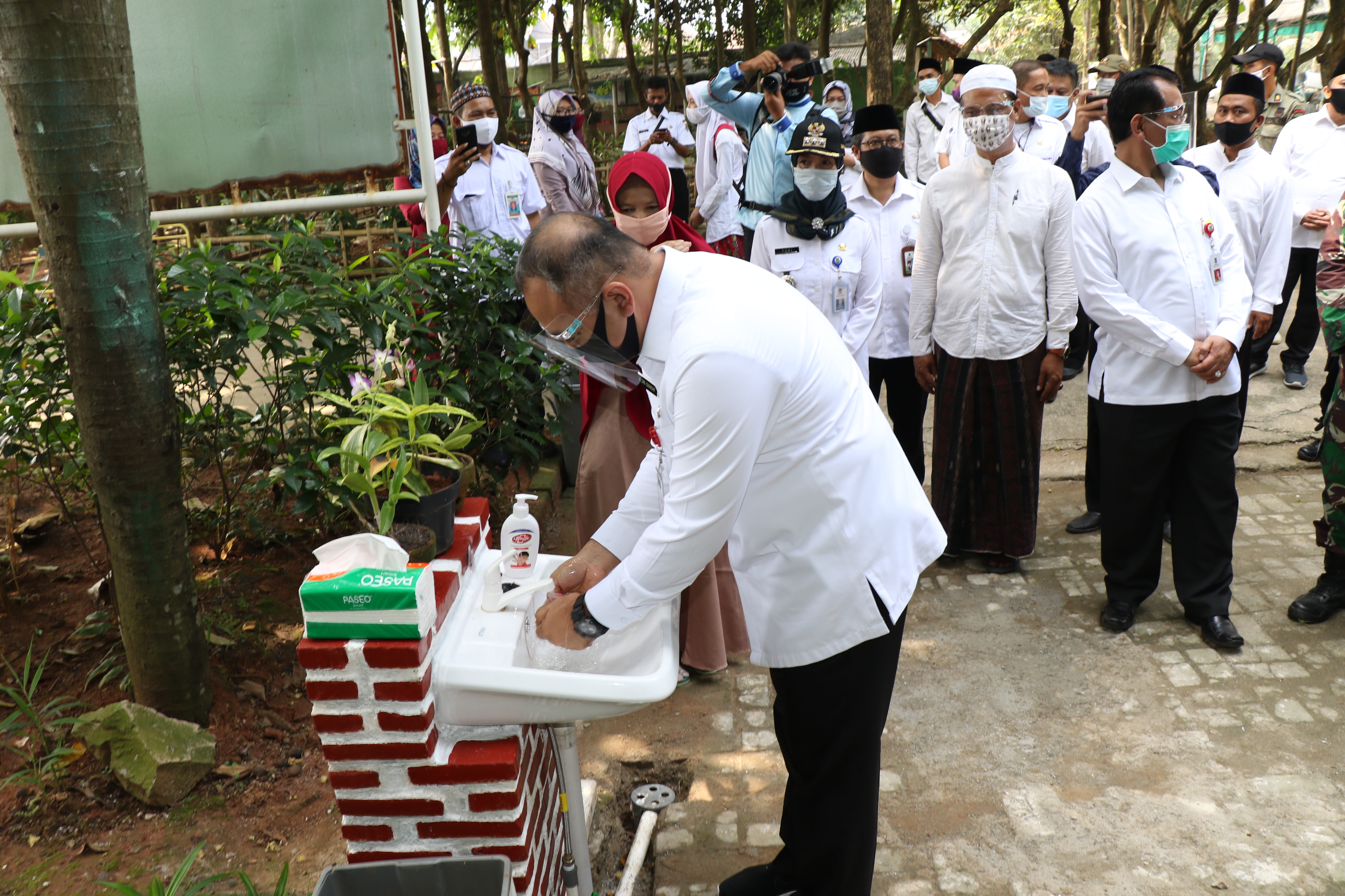 Bupati Tangerang Tinjau Simulasikan Penerapan Protokol Kesehatan Covid-19 di Ponpes Tarbiyatul Mubtadin