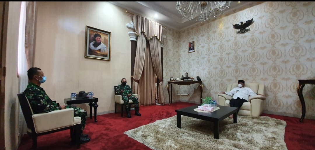 Danrem 064/MY menyampaikan, kami dari Korem 064/MY dalam rangka ingin kenal lebih dekat dengan Forkopimda dan khususnya dalam penanggulangan Covid-19 serta sekaligus ingin menjalin silaturahmi dan mengucapkan terima kasih telah membantu Korem 064/MY selama ini.