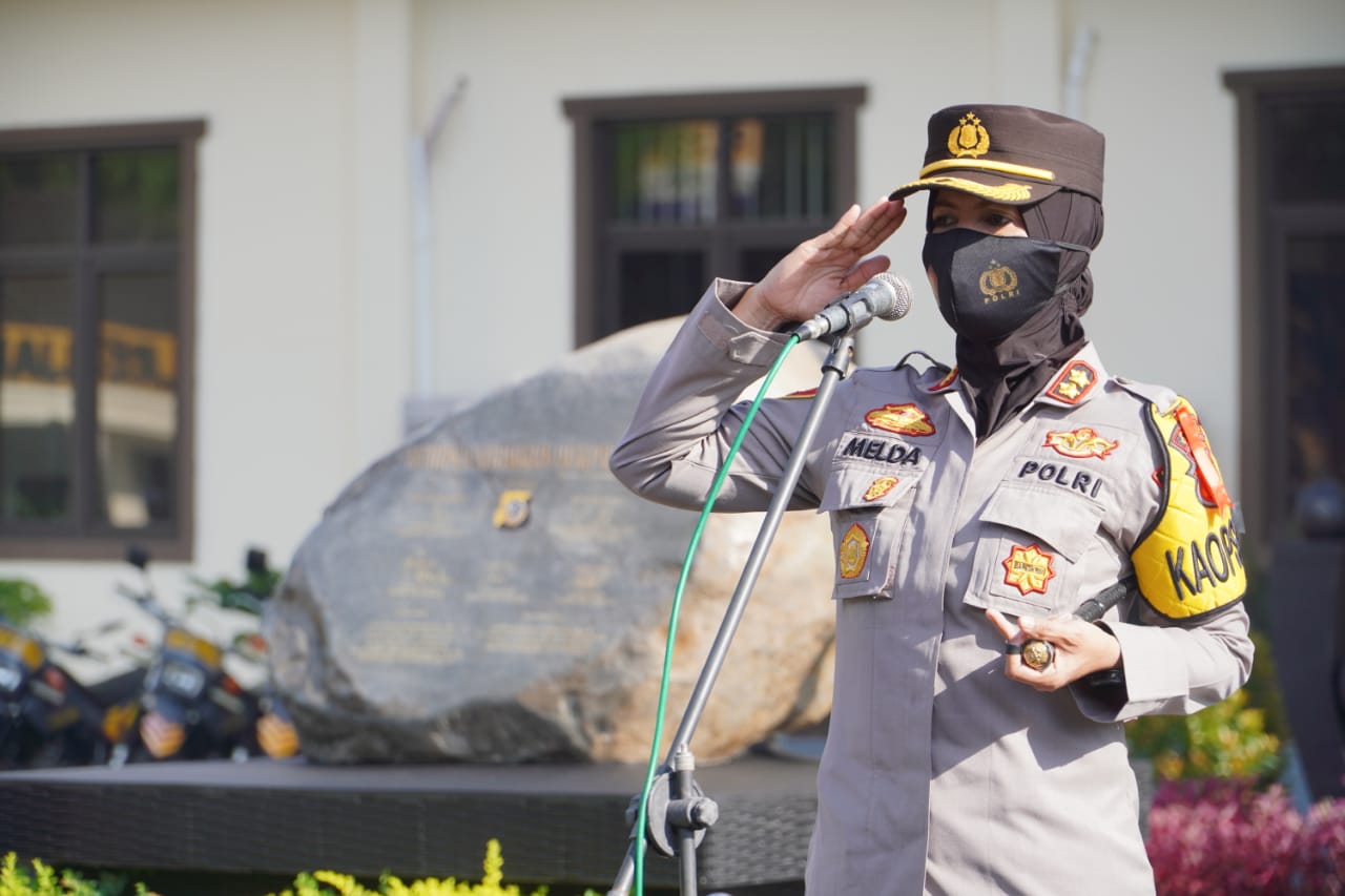 BANJAR, MEDIA OTONOMI INDONESIA – Berlokasi di Halaman Mapolres Banjar Kapolres Banjar AKBP Melda Yanny, pimpin apel siaga pada hari Minggu.