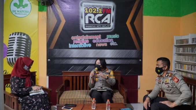 BANJAR, MEDIA OTONOMI INDONESIA – Kapolres Banjar AKBP Ardiyaningsih, talkshow bersama Radio RCA Kota Banjar menyampaikan program vaksinasi dan terkait PPKM Darurat di Kota Banjar.