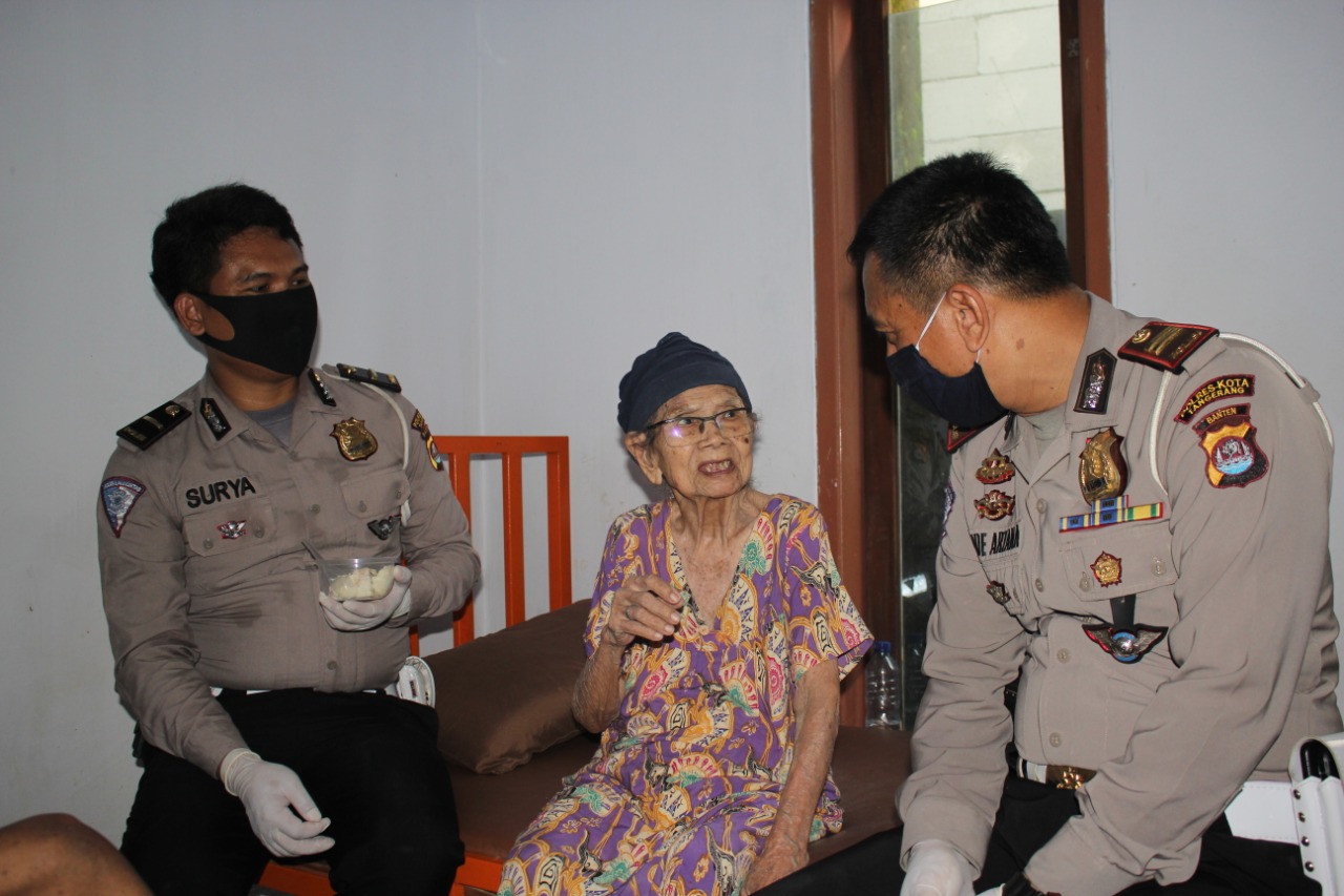 TANGERANG, MOI – Satuan Lalu Lintas Polresta Tangerang Polda Banten terus ambil bagian dalam usaha mencegah penyebaran Covid-19. Kamis (9/4/2020), Satlantas Polresta Tangerang membagikan 50 paket sembako kepada para lansia di Rumah Singgah Lansia Pondok lansia berdikari di Desa Sodong, Kecamatan Tigaraksa, Kabupaten Tangerang.