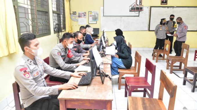 Banjar – Kepala Kepolisian Resor (Kapolres) Banjar AKBP Ardiyaningsih tinjau pelaksanaan Gerai Vaksin Presisi bagi siswa-siswi SMAN 1 Banjar yang dilaksanakan di Gedung SMAN 1 Banjar, Selasa (10/8/2021).
