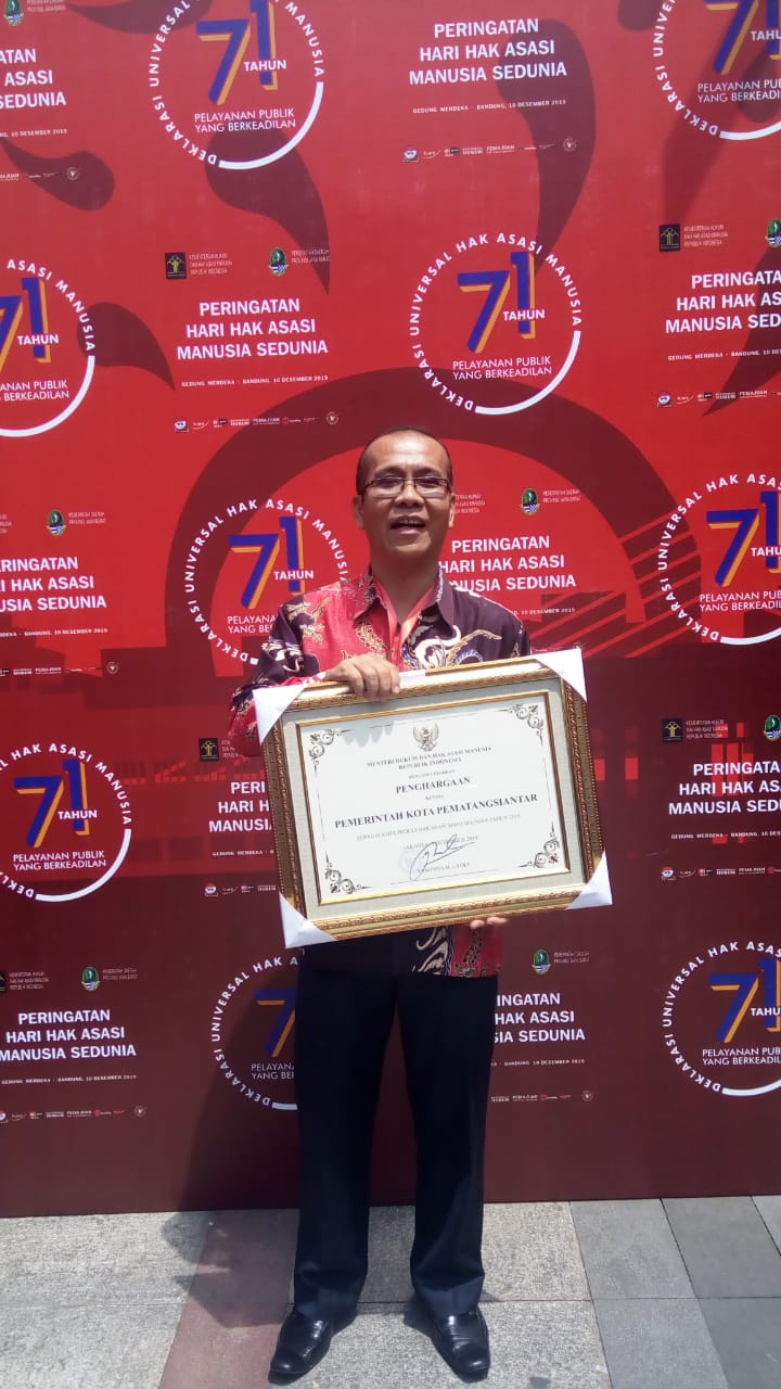 PEMATANGSIANTAR, MOI – Pemerintah Kota (Pemko) Pematangsiantar menerima penghargaan sebagai salah satu Kota Peduli Hak Azasi Manusia (HAM) tahun 2019, yang diserahkan pada acara peringatan Hari HAM Sedunia ke-71 yang dilaksanakan Kementerian Hukum dan HAM Republik Indonesia, di Gedung Asia Afrika Bandung, Jawa Barat, Selasa (10/12/2019).