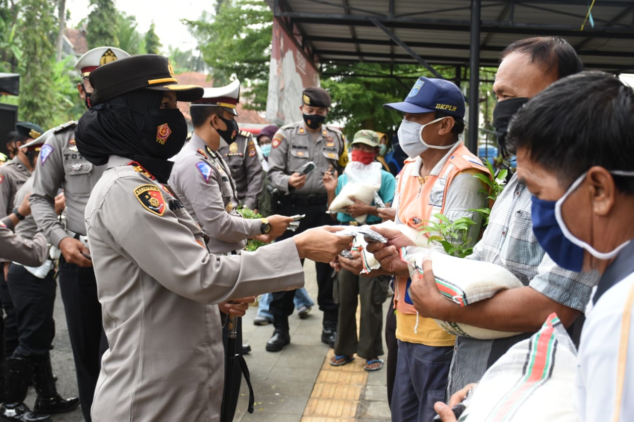 Dalam kegiatan tersebut juga membagikan bantuan berupa beras kepada warga sekitar, abang becak dan ojeg sebanyak 57 kantong dengan masing-masing 5 kg.