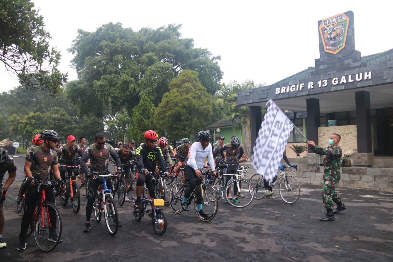 Danbrigif Raider 13 kali ini melaksanakan kunjungan kerja ke Yonif Raider 323/BP dengan melaksanakan bersepeda Roadbike Bersama Danyonif Raider 323/BP Letkol Inf Afriandy Bayu Laksono, Para Kasi dan Staf Brigif 13 serta turut ikut Komunitas sepeda dari Tasikmalaya.
