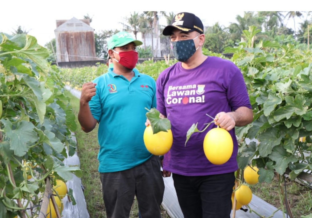 Bersama Pangdam Jaya/Jayakarta, Bupati Zaki Panen Melon di Teluknaga.