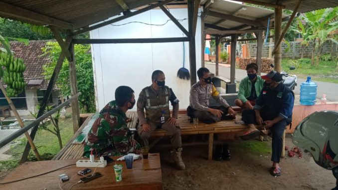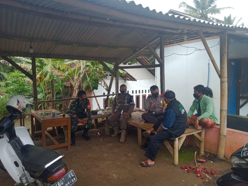Bhabinkamtibmas melaksanakan kegiatan pembinaan dan penyuluhan tentang pencegahan Protokol Kesehatan dimasa Pandemi Covid-19 dan bergerak menyasar ke tempat tempat warga biasa berkumpul, salah satu di sebuah saung Dusun Cigadung RT.04 RT.09 Desa Karyamukti Kecamatan Pataruman Kota Banjar.