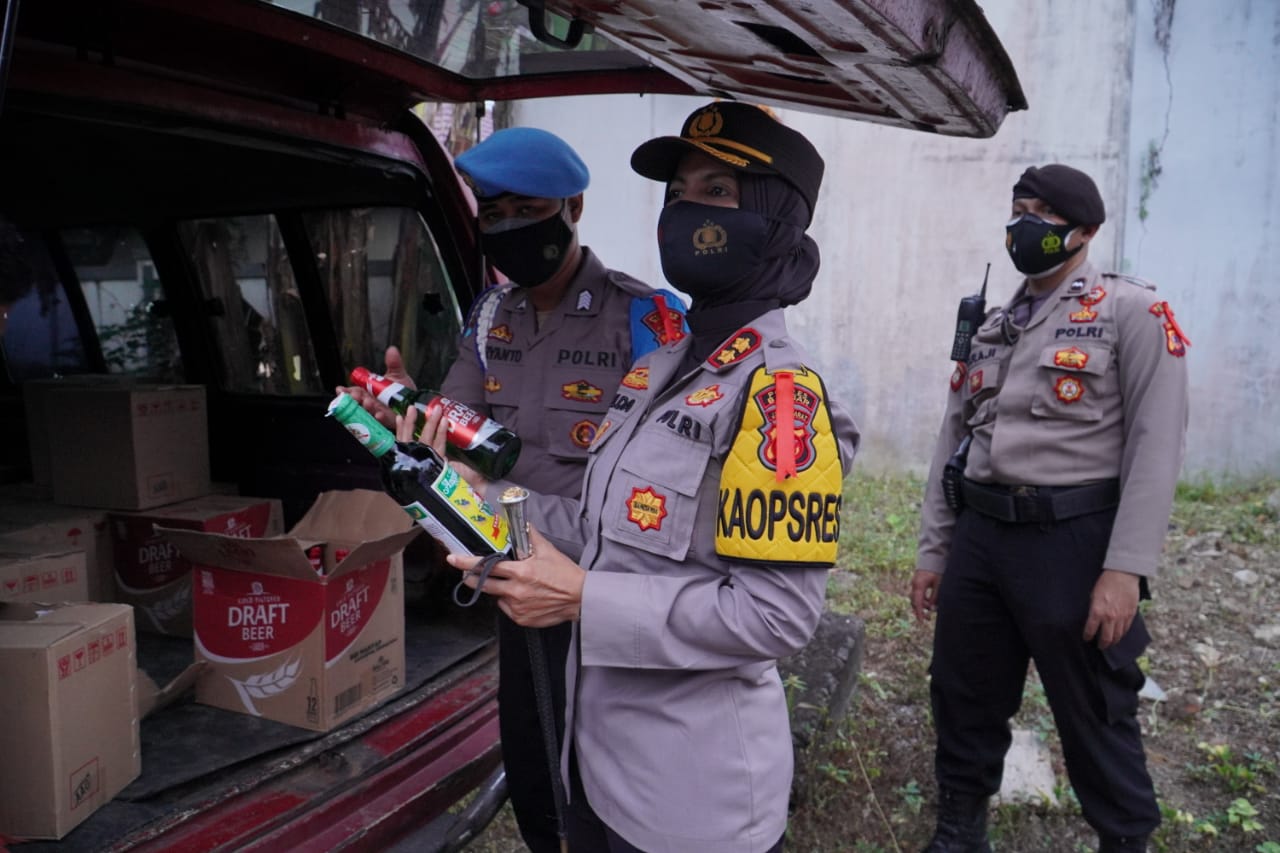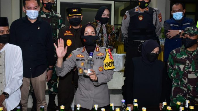BANJAR, MEDIA OTONOMI INDONESIA – Kapolres Banjar AKBP Melda Yanny, pimpin cipta kondisi menjelang malam hari raya Idul Fitri dengan operasi Razia Minuman Keras di wilayah hukum Polres Banjar, Rabu (12/5/2021).