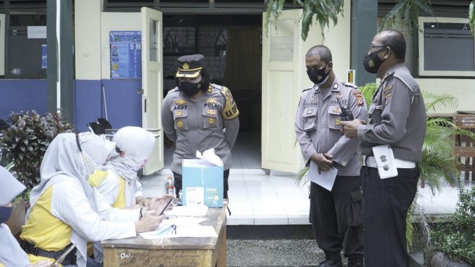 Banjar – Dihari kedua Kepala Kepolisian Resor Banjar AKBP Ardiyaningsih, tinjau pelaksanaan Gerai Vaksin Presisi bagi Siswa-Siswi SMAN 1 Banjar yang dilaksanakan di Gedung SMAN 1 Banjar, Kamis (12/8/2021).