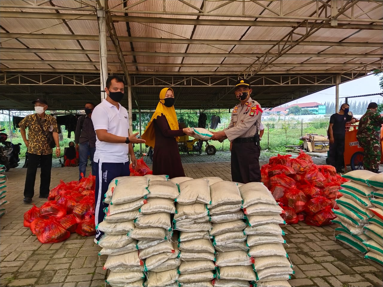 KAB. BEKASI, MOI – Sebanyak 500 paket sembako dibagikan di Cikarang pusat, Kabupaten Bekasi, Jawa Barat, Rabu (13/05/2020) siang. Bantuan itu berasal dari warga Cluster Malibu, Perumahan Kota Delta Mas, Kabupaten Bekasi.