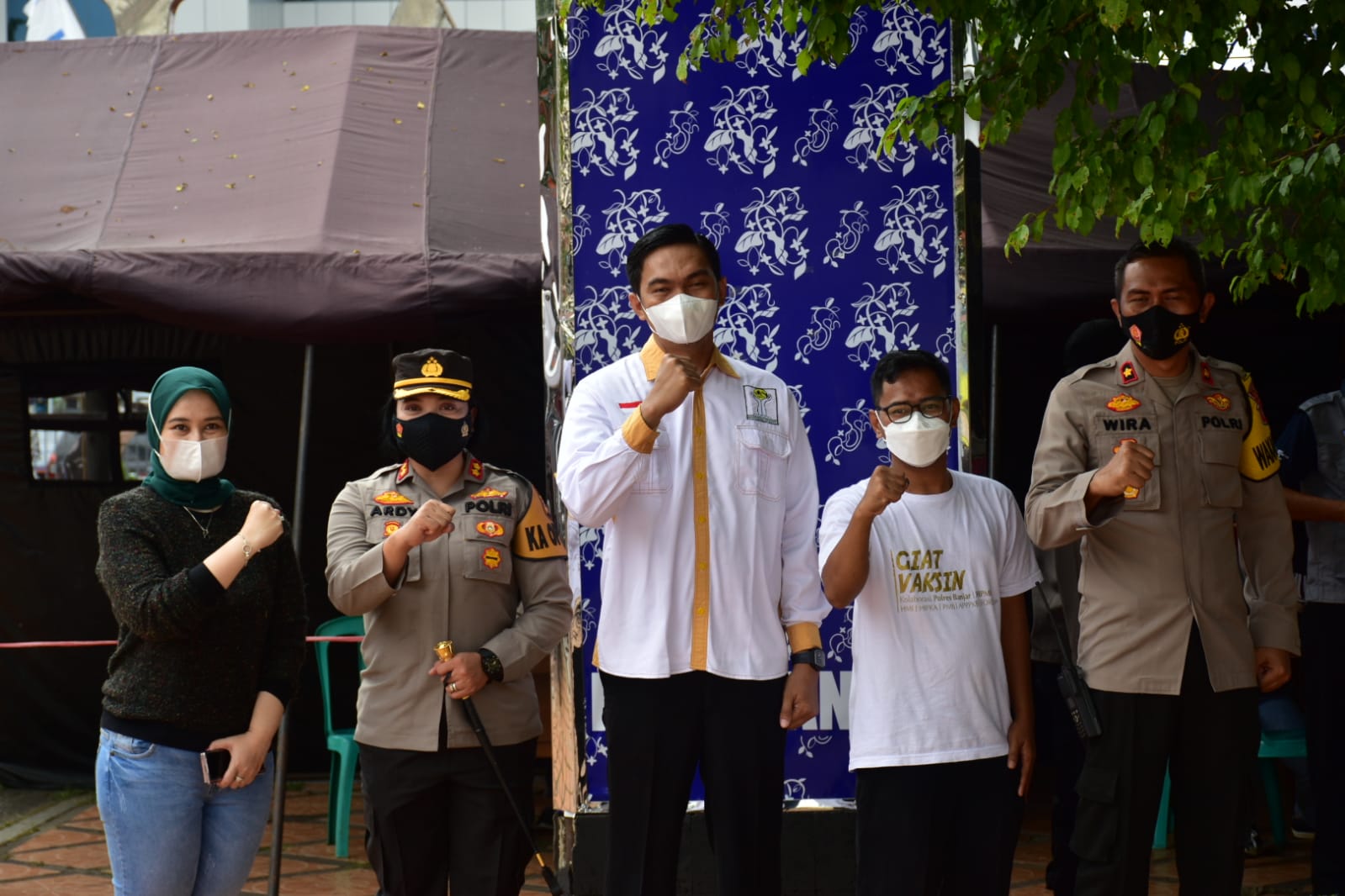 Dalam kegiatan tersebut, Kapolres mengecek pelaksanaan Gerai Vaksin Presisi di alun-alun Kota Banjar.