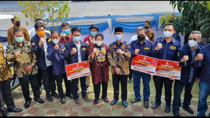 ”Hasil dari virtual saya melaporkan kegiatan relawan PPKM Mikro Karang Taruna Banten. Kemensos kemudian merespon dengan merencanakan penyaluran bantuan berupa vitamin dan masker ke warga terdampak Covid-19 melalui Karang Taruna Banten. Alhamdulillah hari ini terlaksana,” ujar Sekjen Karang Taruna Banten Gatot Yan S saat menerima secara simbolis bantuan paket vitamin dan masker dari Menteri Sosial Tri Rismaharini di Kota Serang bersama pengurus kabupaten/kota, Jumat (13/08/2021).