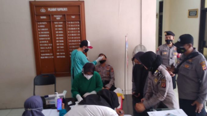 Kapolres menambahkan, dari perwakilan 50 orang yang di test swab antigen dipilih dengan kriteria, anggota yang tugasnya pelayanan dan anggota yang selesai melaksanakan tugas dari luar kota, diwajibkan melaksanakan tes swab ini. Hasil test swab antigen 50 anggota ini, semuanya negatif, kata Kapolres.