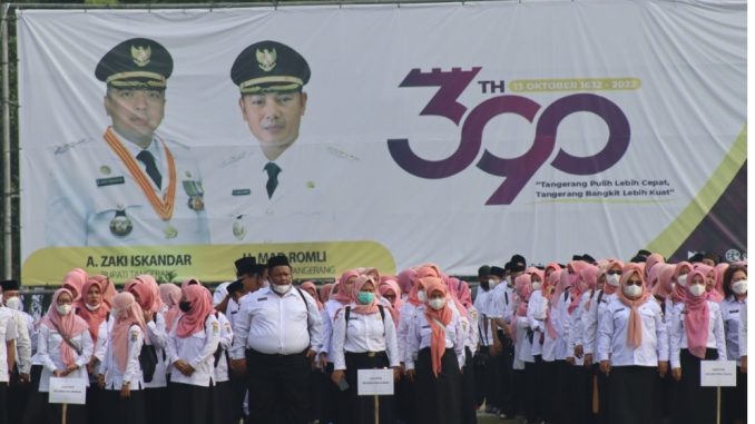 Tangerang,  mediaotonomiindonesia.com Pemerintah Kabupaten (Pemkab) Tangerang menggelar apel HUT ke-390 Kabupaten Tangerang yang diikuti sebanyak 4.000 pegawai di lingkup pemerintahan. Apel pagi tersebut dipimpin Wakil Bupati Tangerang H. Mad Romli di Lapangan Maulana Yudha Negara Puspemkab Tangerang, Kamis (13/10/22).