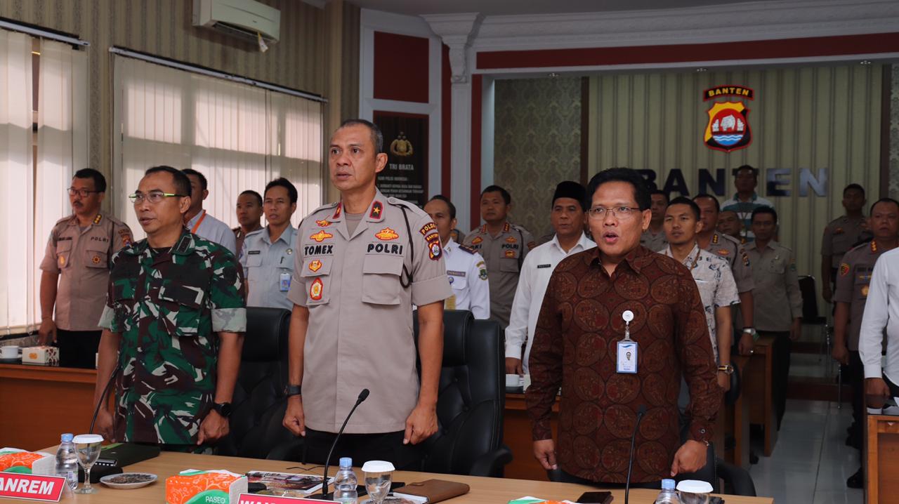 Dari Mapolda Banten Vicon dipimpin langsung Wakapolda Banten Brigjen Pol Drs. Tomex Korniawan, didampingi Irwasda Polda Banten Kombes Pol Drs. I Nyoman Labha Suradnya, M.M pejabat utama Polda Banten beserta seluruh kepala Instansi terkait di Provinsi Banten, Jumat (13/12/2019) pukul 08.00 WIB.