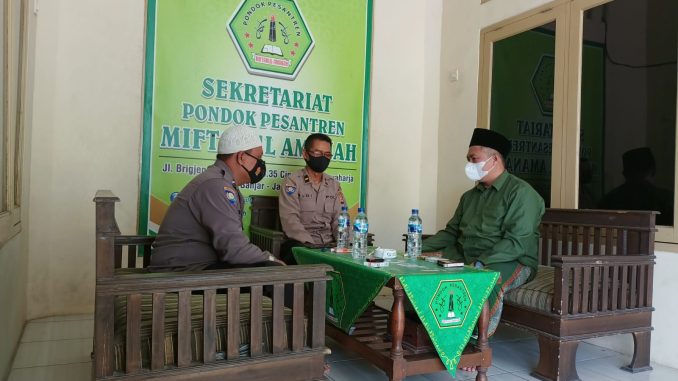 Banjar, mediaotonomiindonesia.com – Guna menjalin silaturahmi dengan tokoh agama, Sat. Binmas lakukan kegiatan silaturahmi dan koordinasi dengan Pengurus Forum Pondok Pesantren Kota Banjar, KH Ma’mun Sidiq bertempat di Pondok Pesantren Miftahul Amanah Jln Brigjen M. Isa Cipadung Purwaharja, Senin (14/3/2022).
