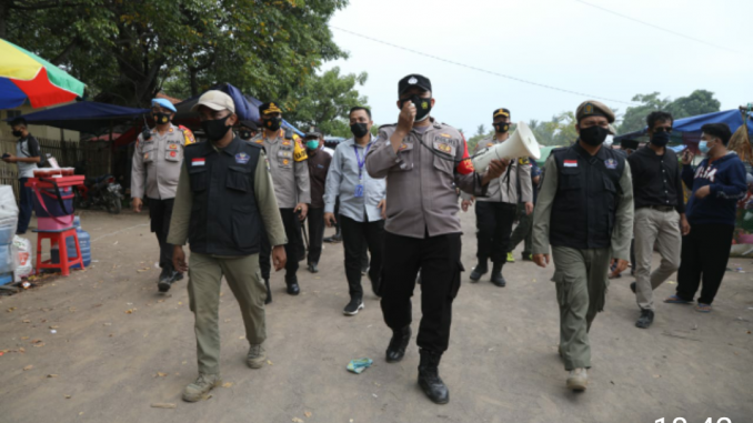 TANGERANG, MEDIA OTONOMI INDONESIA – Kapolresta Tangerang Kombes Pol Wahyu Sri Bintoro mendampingi Satuan Tugas (Satgas) Penanggulangan Covid-19 Kabupaten Tangerang saat memberikan imbauan kepada pengunjung objek wisata Pantai Tanjung Kait, Kecamatan Mauk, Kabupaten Tangerang, Jumat (14/5/2021).
