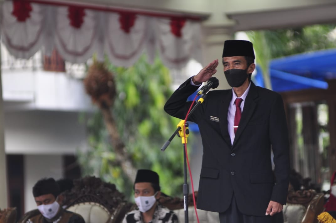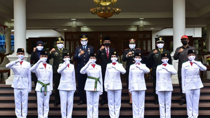 mediaotonomiindonesia.com, Banjar – Wakil Wali Kota Banjar Nana Suryana mengukuhkan Pasukan Pengibar Bendera Pusaka (Paskibraka) Kota Banjar Tahun 2021 yang digelar di halaman depan Pendopo Kota Banjar, Minggu (15 Agustus 2021).
