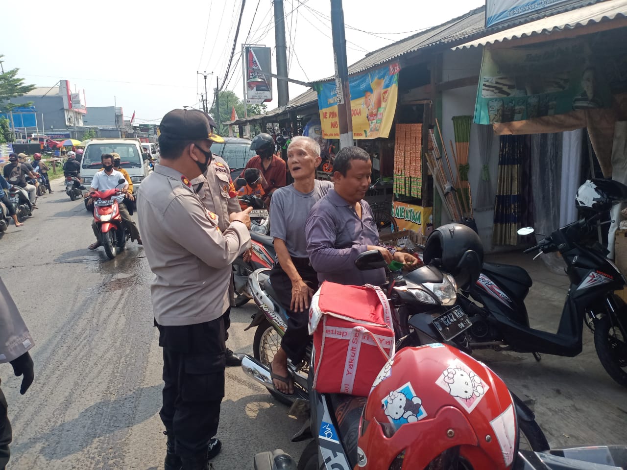 Kapolsek Tigaraksa Kompol. Sumaedi melaksanakan patroli Penegakan Disiplin Protokol Kesehatan guna mencegah penyebaran covid-19 di lokasi pasar gudang Tigaraksa.
