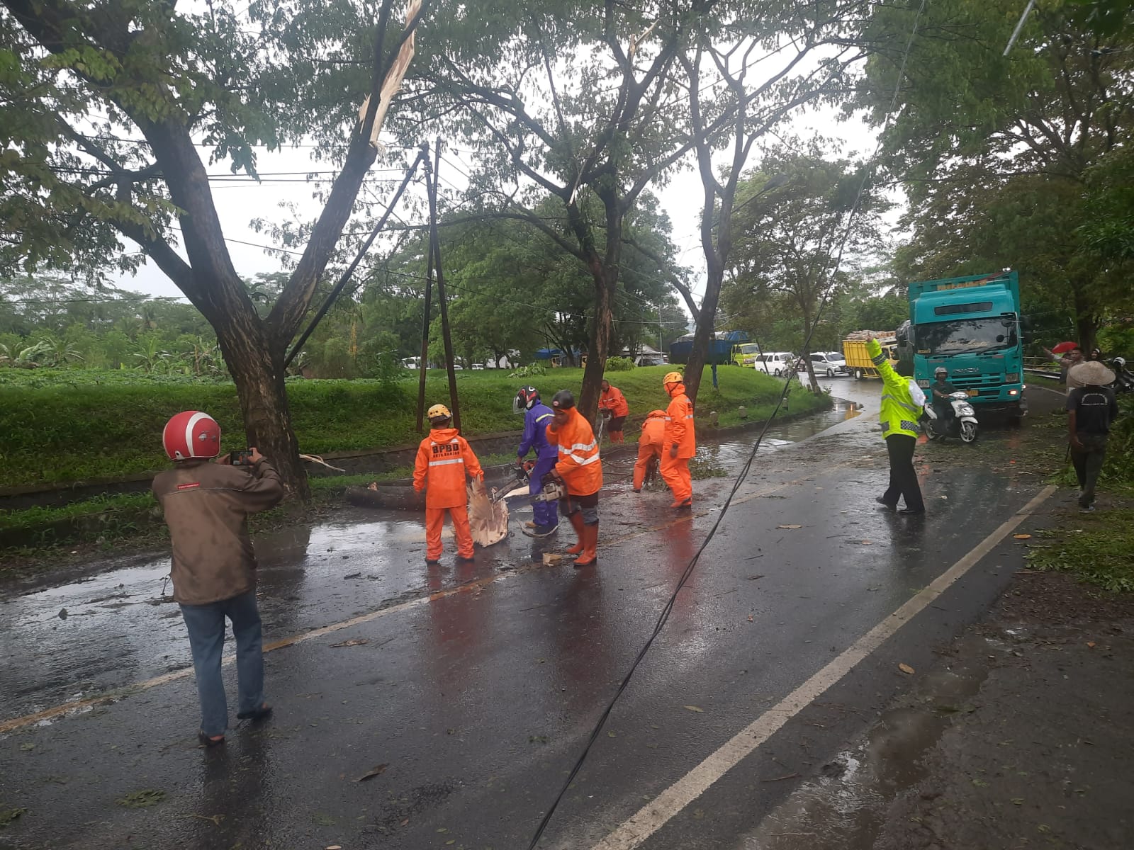Kepala Pelaksana Badan Penanggulangan Bencana Daerah (BPBD) Kota Banjar Kusnadi mengatakan, pihaknya bersama Polres Banjar dan warga sekitar telah berusaha untuk membersihkan pohon tumbang tersebut dibantu warga sekitar, hingga kemacetan tidak terjadi terlalu lama.